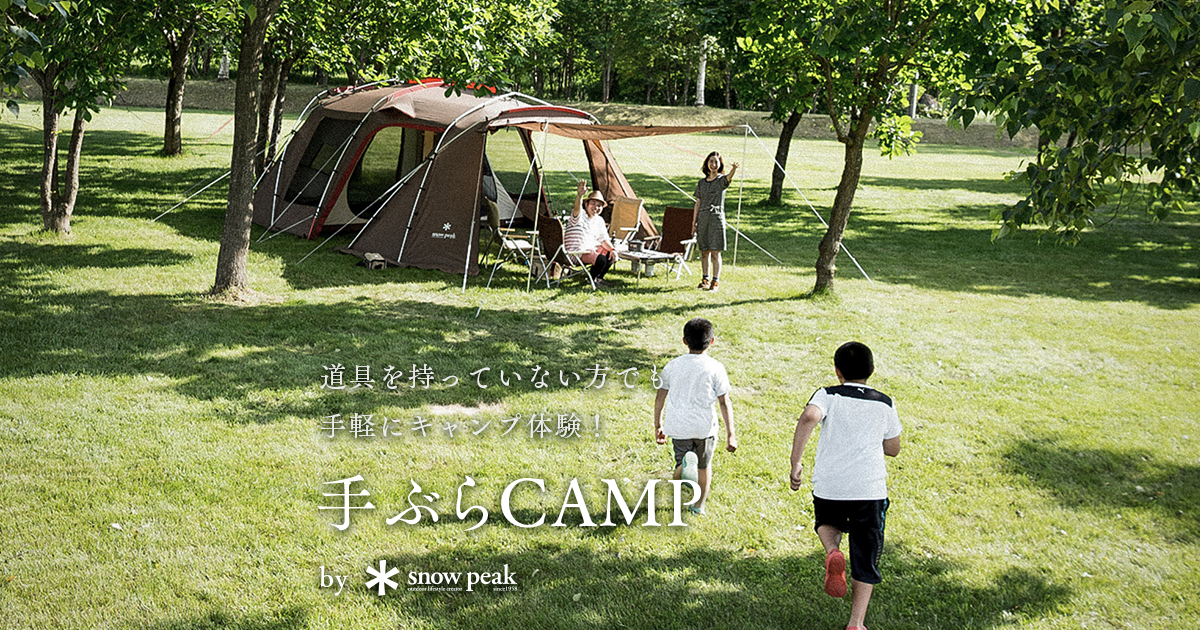 スノーピーク直営キャンプフィールド(+提携キャンプ場)の「手ぶらCAMPプラン」です。